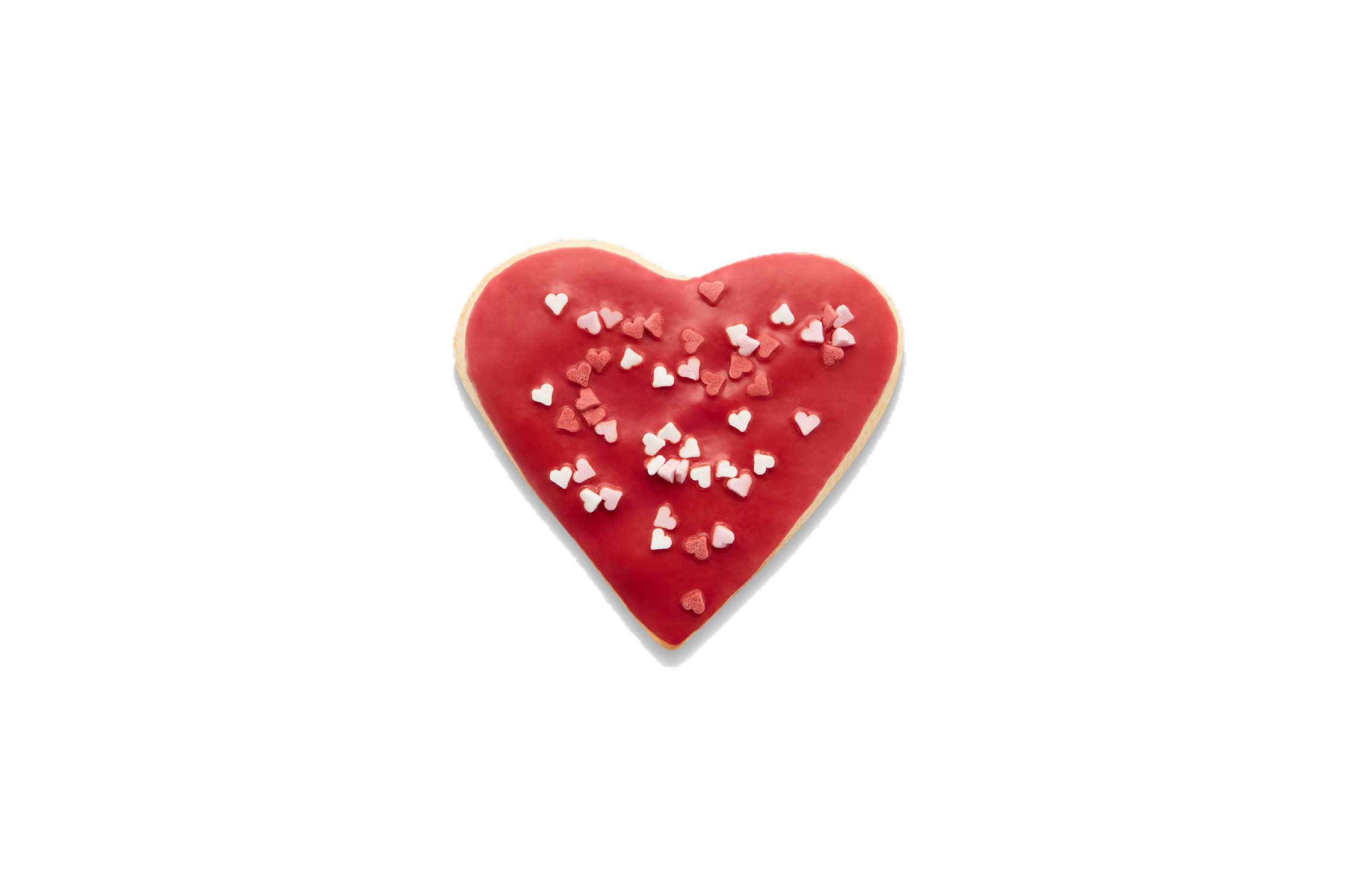 Feiern Sie den Tag der Liebe mit diesem Keks mit rotem Zuckerguss und Miniherzen als Topping, perfekt für den Anlass! Hoch auf Prognose*