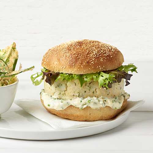 Fisch-Burger mit Mayonnaise und Wasabi