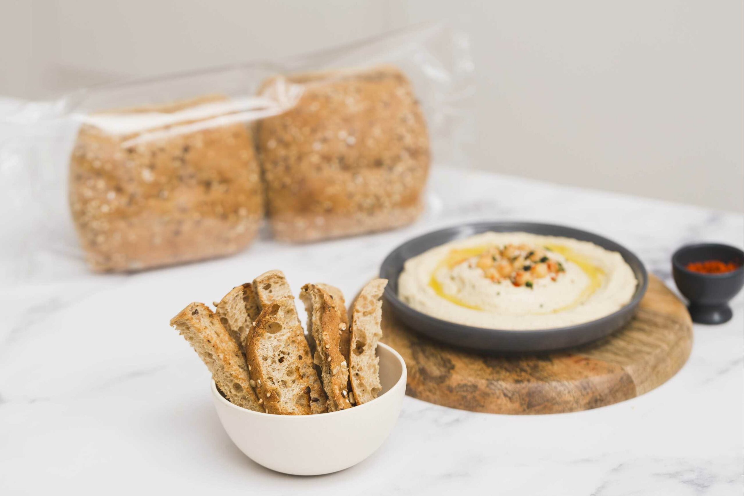 Hummus mit Cristallino Ciabatta Crystal Kornspitz