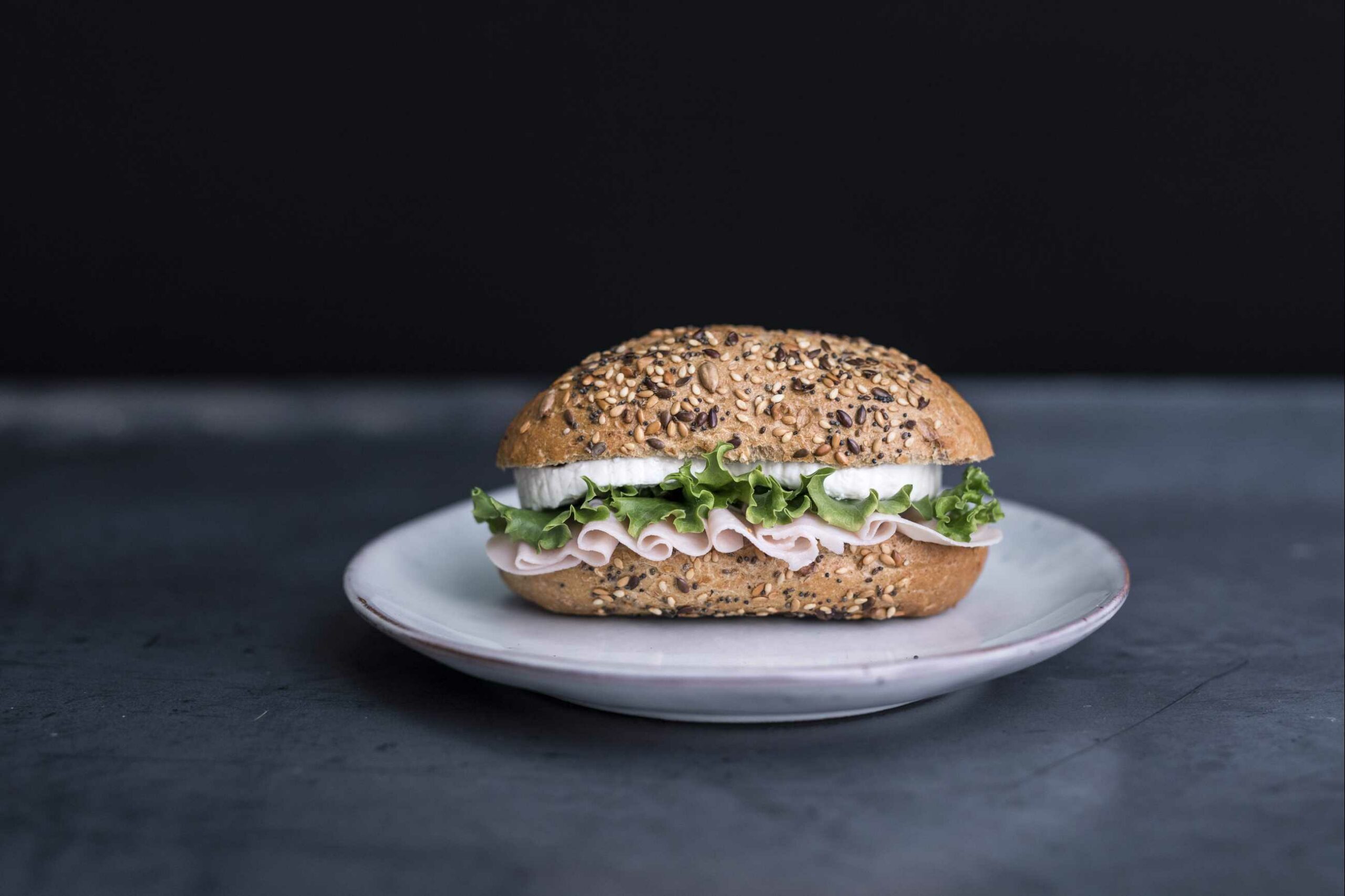 6-Saaten-Brötchen mit Frischkäse und Pute